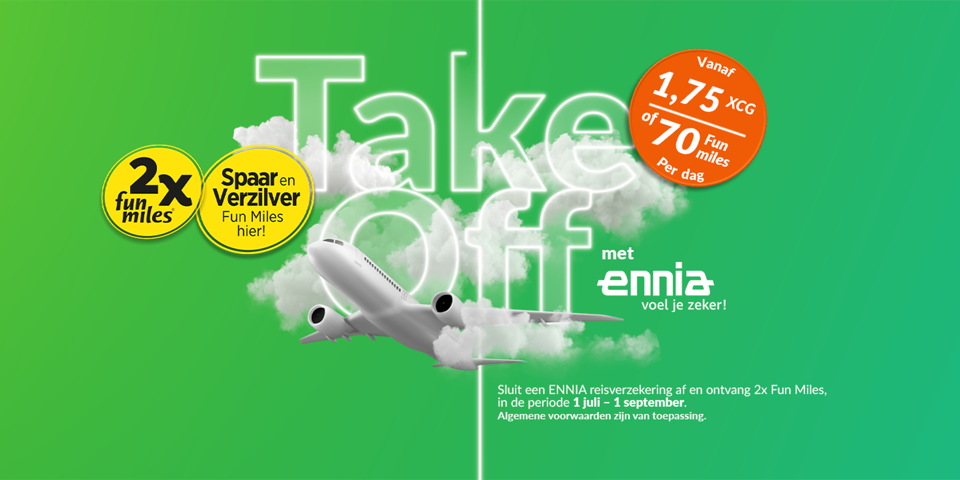 Sluit nu je ENNIA reisverzekering af en ontvang 2x Fun Miles!